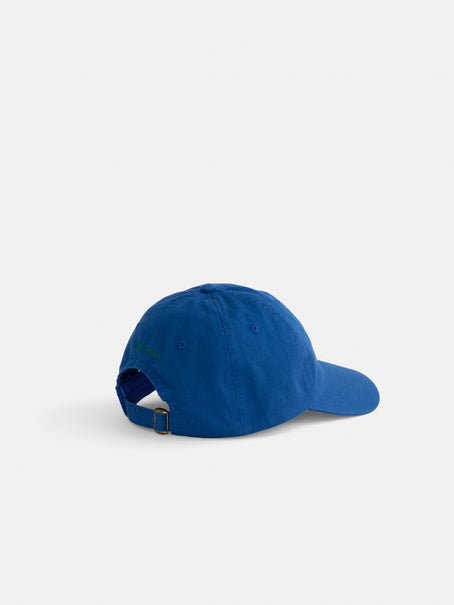 The Beanie In Brushed Cashmere is a blue knitted hat with a folded brim, made from 100% cashmere and shown on a white background—an ideal gift for any occasion.
