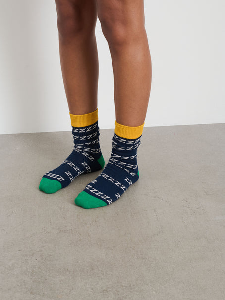 Cashmere Socks in ribbed red with white cuffs, navy blue heels, and navy blue toes are shown against a plain white background.