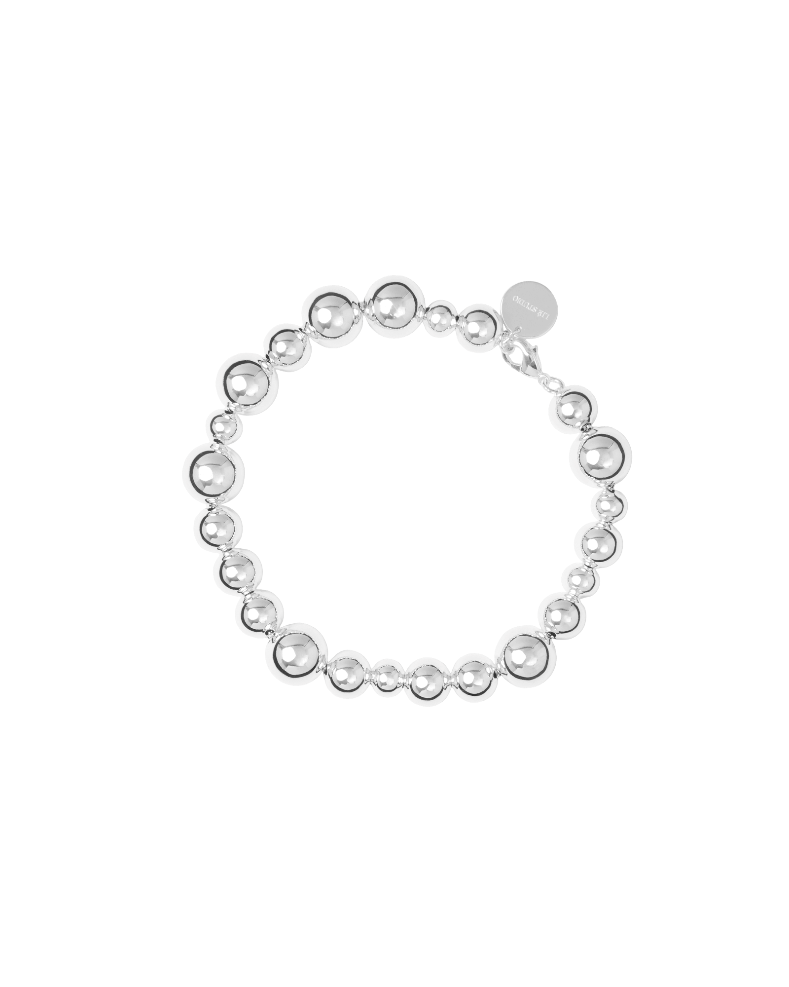Length of bracelet: 20 cm. Small pearl is 7 mm in diameter, medium pearl is 9 mm in diameter and large pearl is 12 mm in diameter. Total weight of 9 g.