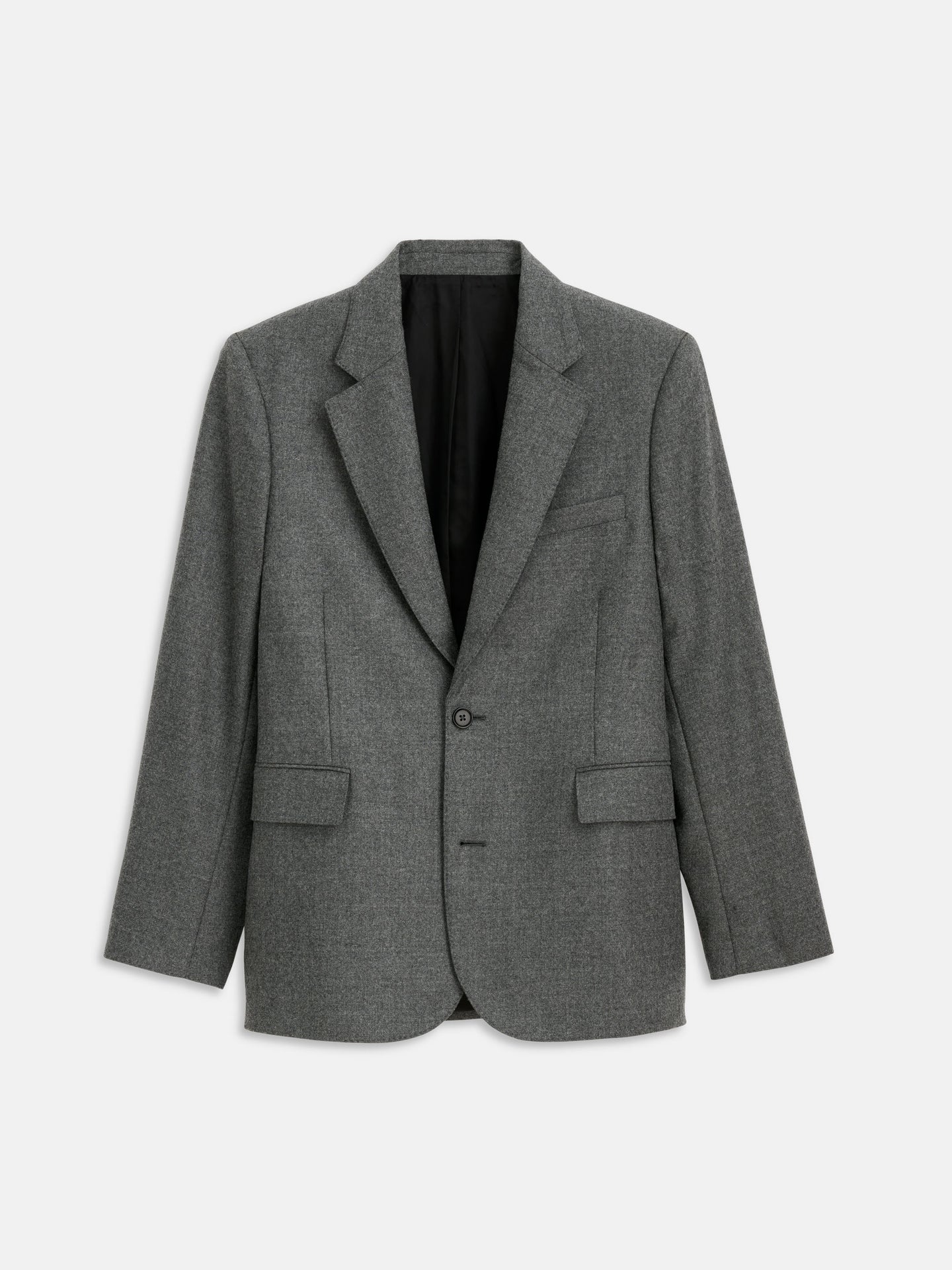 Details we love: Perfect tailoring, pick-stitching at edges, luxurious wool flannel, Welt pockets with flaps, lined, corozo buttons, backer buttons at interior for reinforcement, Interior welt and triangle pockets at interior.