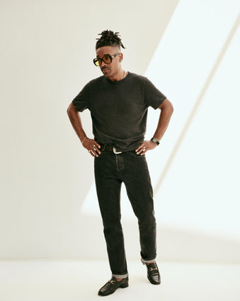 A journalist on menswear, Kamau’s got great style (and really great taste). So when he showed up on set and showed us how he wears his favorite Alex Mill jeans, we took notes.