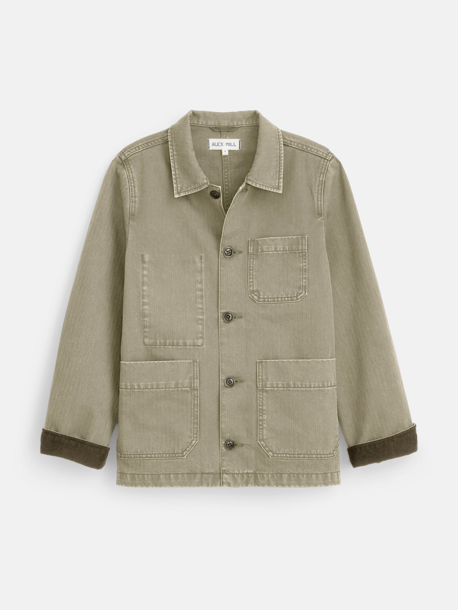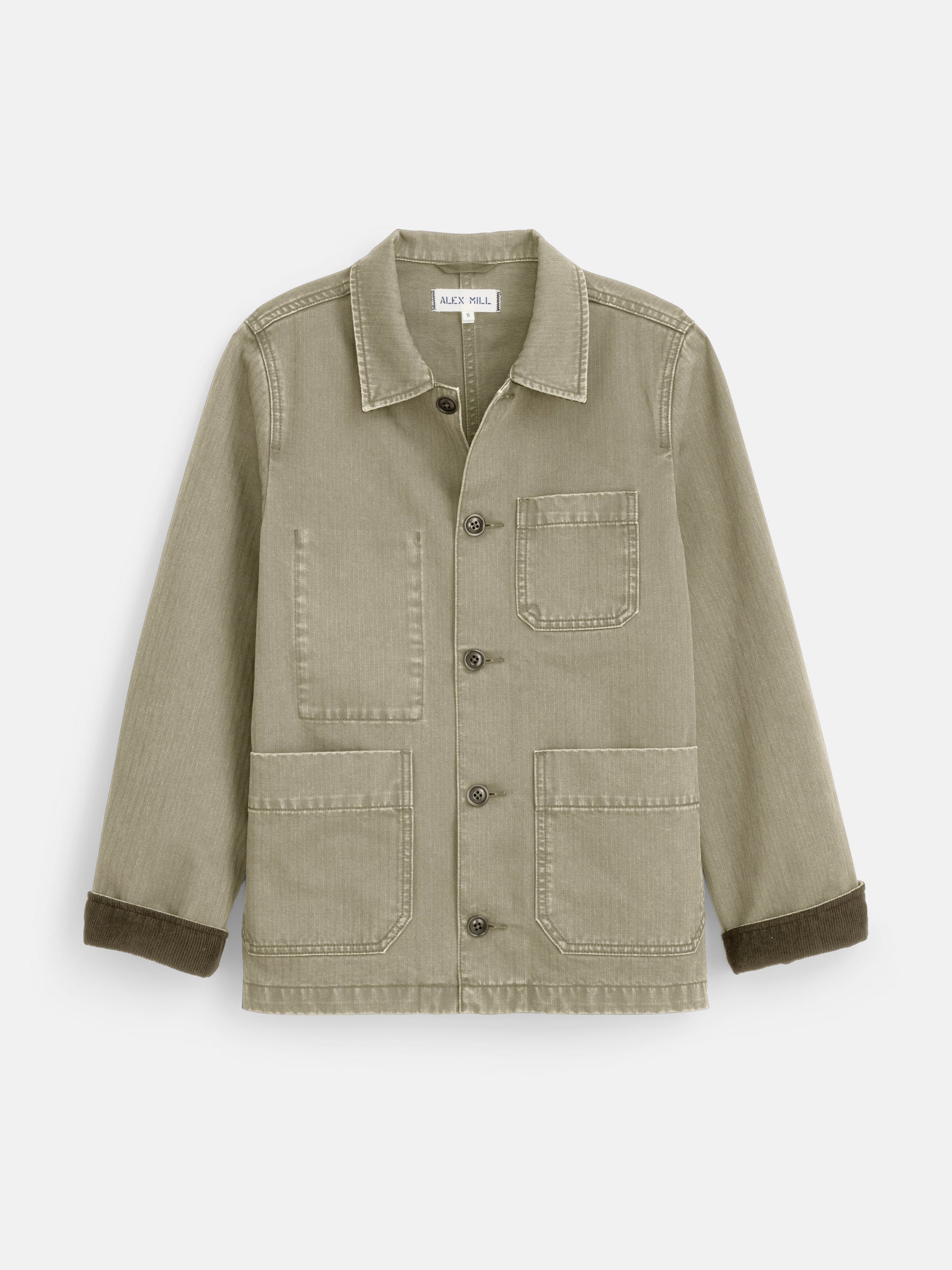 - Details we love: Corozo buttons, garment-dyed for perfectly irregular wash of color, military-inspired herringbone fabric, corduroy collar and cuffs.