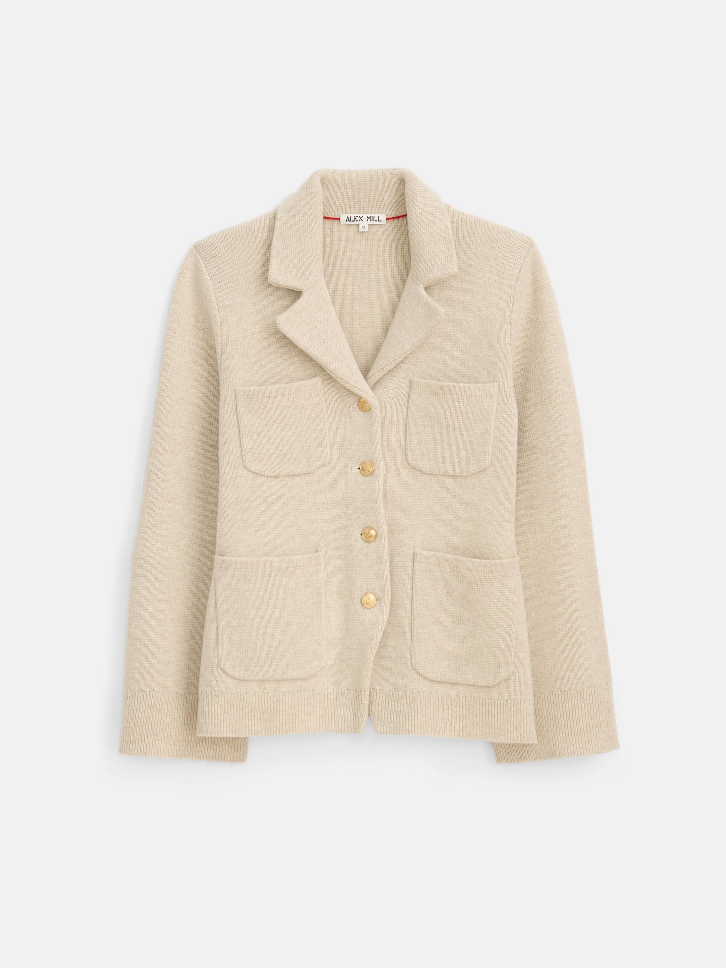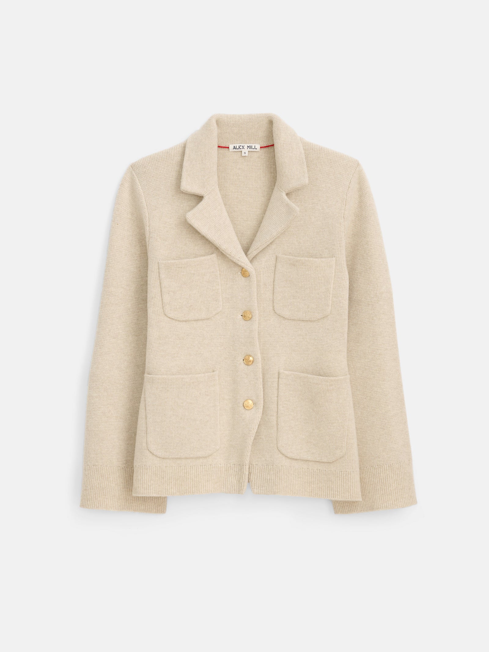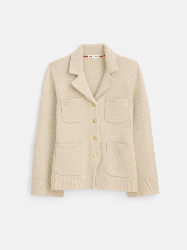 - Details we love: Made in super-small batches, soft wool cotton blend, brass crest buttons.